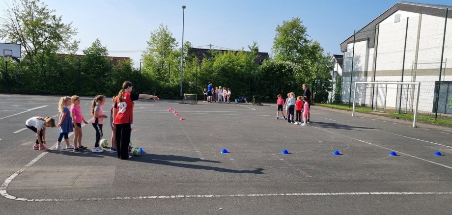 Schießen, Dribbeln, Tricksen: Alle Kinder der Grundschule Anhausen hatten dank des Fußballvereins ..................am ......................die Möglichkeit, die Sportart besser kennenzulernen und vieles auszuprobieren.