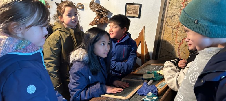 Wir waren heute, am 16.12.2025 im Dorfmuseum. Dort haben wir uns einen alten Schultisch angesehen und mit Kreide auf eine echte Schiefertafel geschrieben. Anschließend haben wir uns einige alte Räume angeschaut: ein Schlafzimmer, eine Schusterwerkstatt, eine Küche, ein Wohn- und ein Esszimmer. Zum Schluss haben wir uns noch viele alte Sachen von früher im Haus und in der Scheune angesehen. Das war wirklich ein sehr schöner Ausflug, an den wir uns gerne erinnern werden.